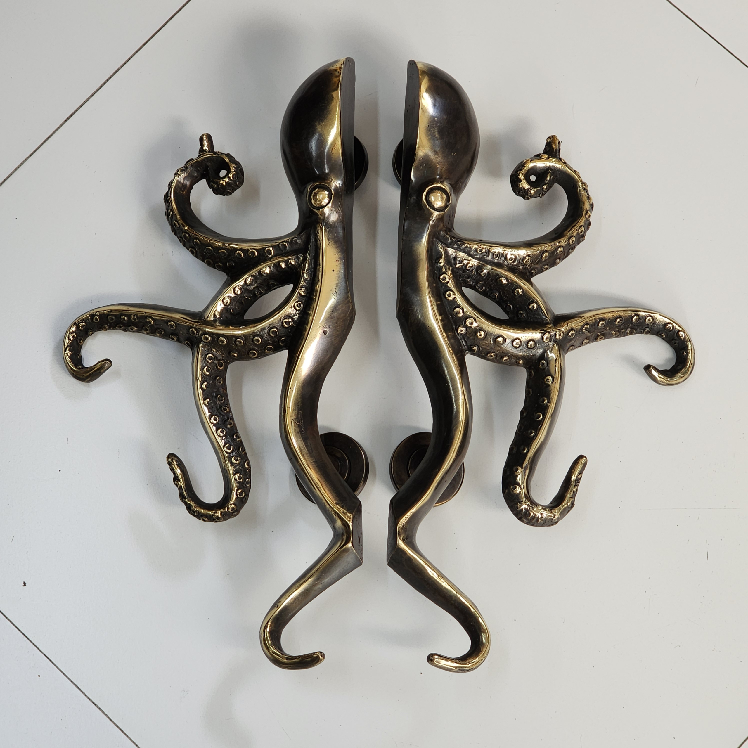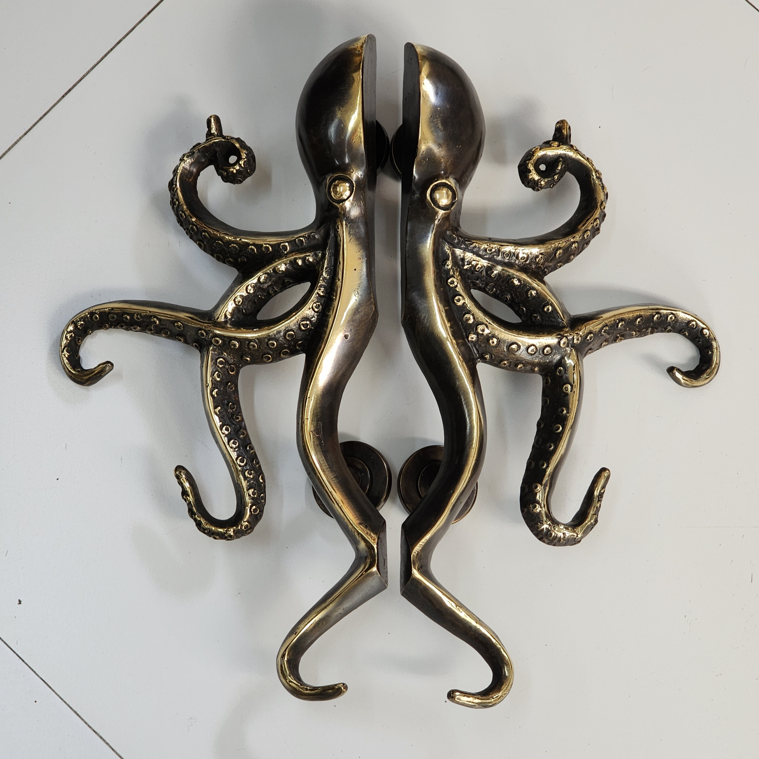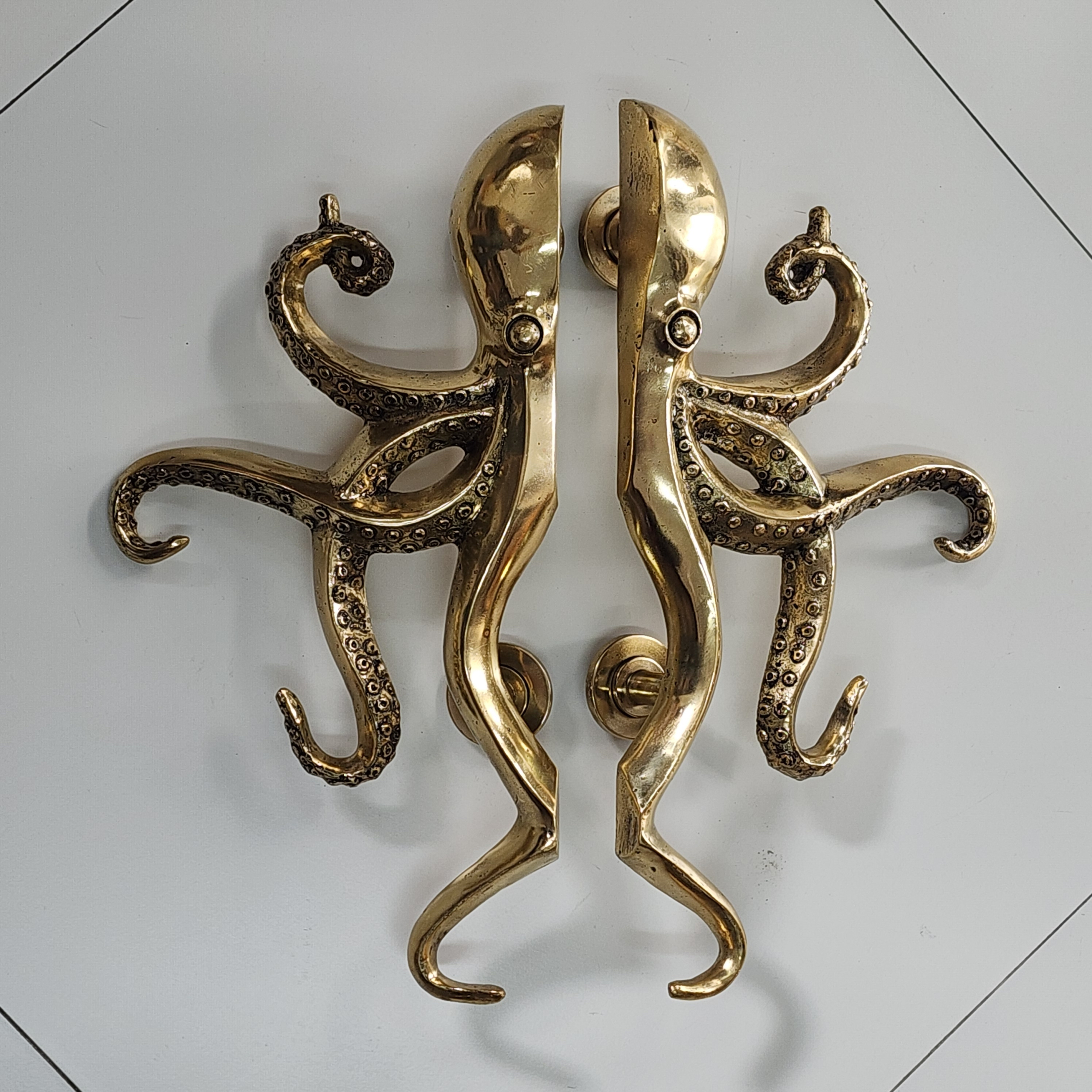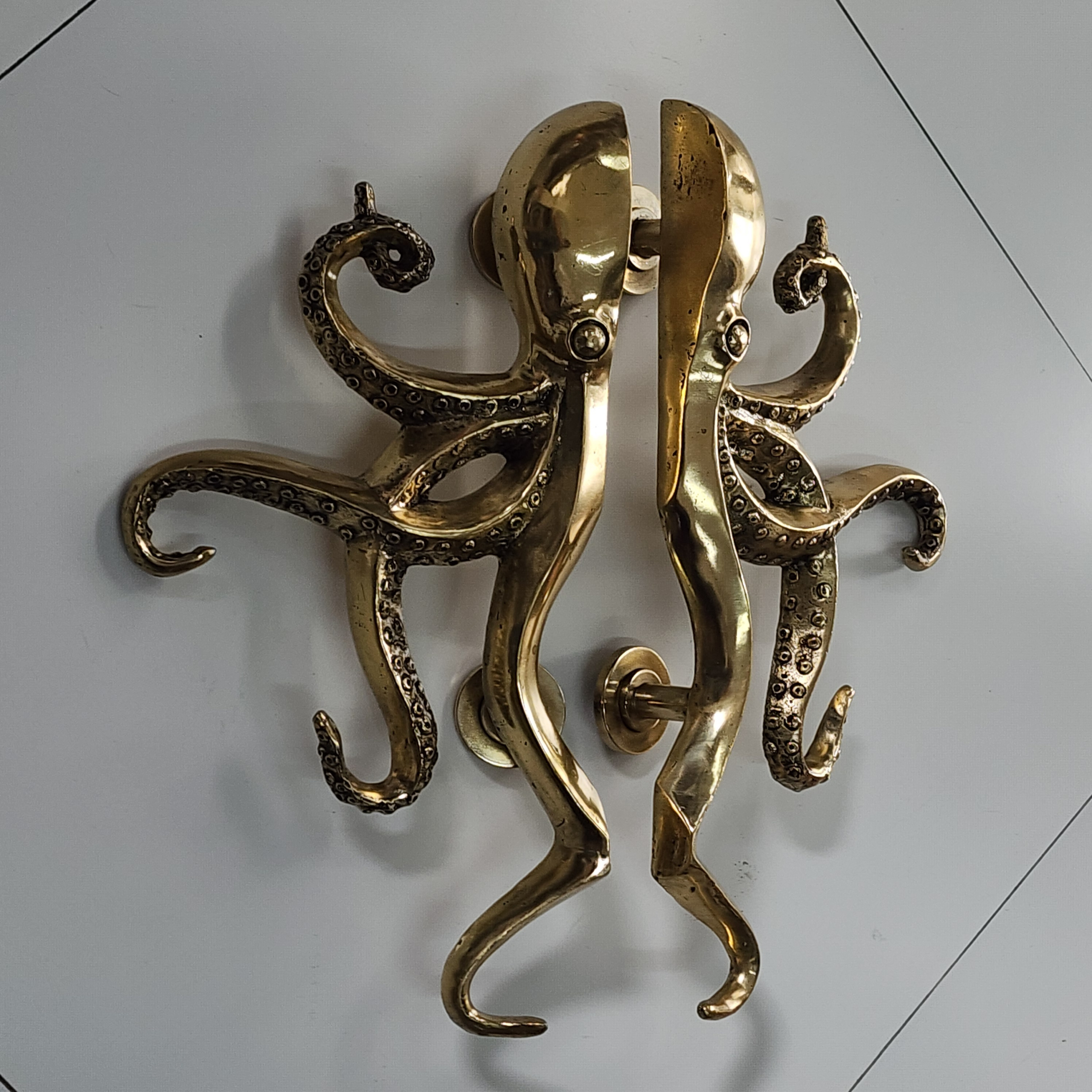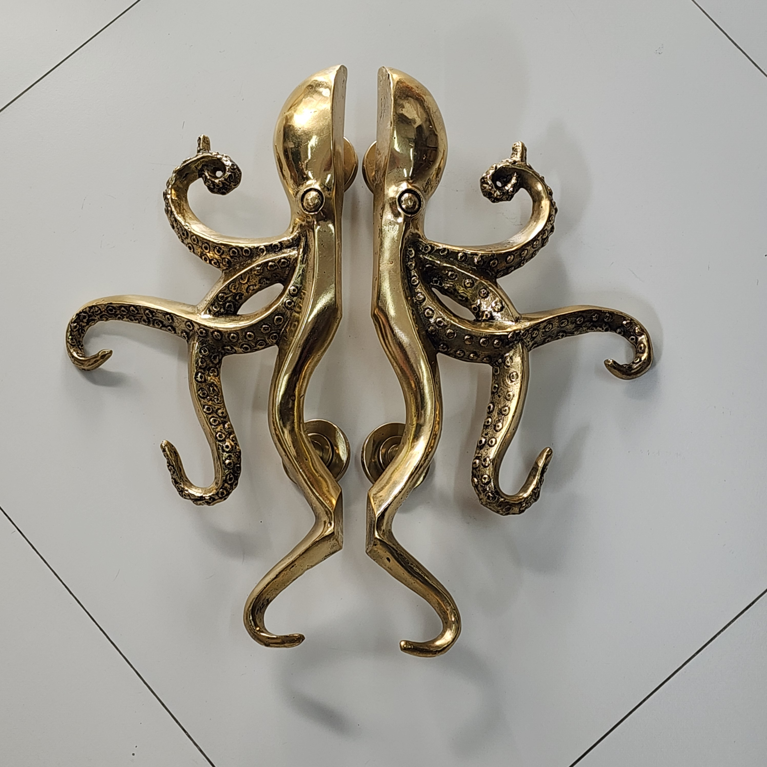 A Pair Octopus Brass Handle Left & Right Door Pulls